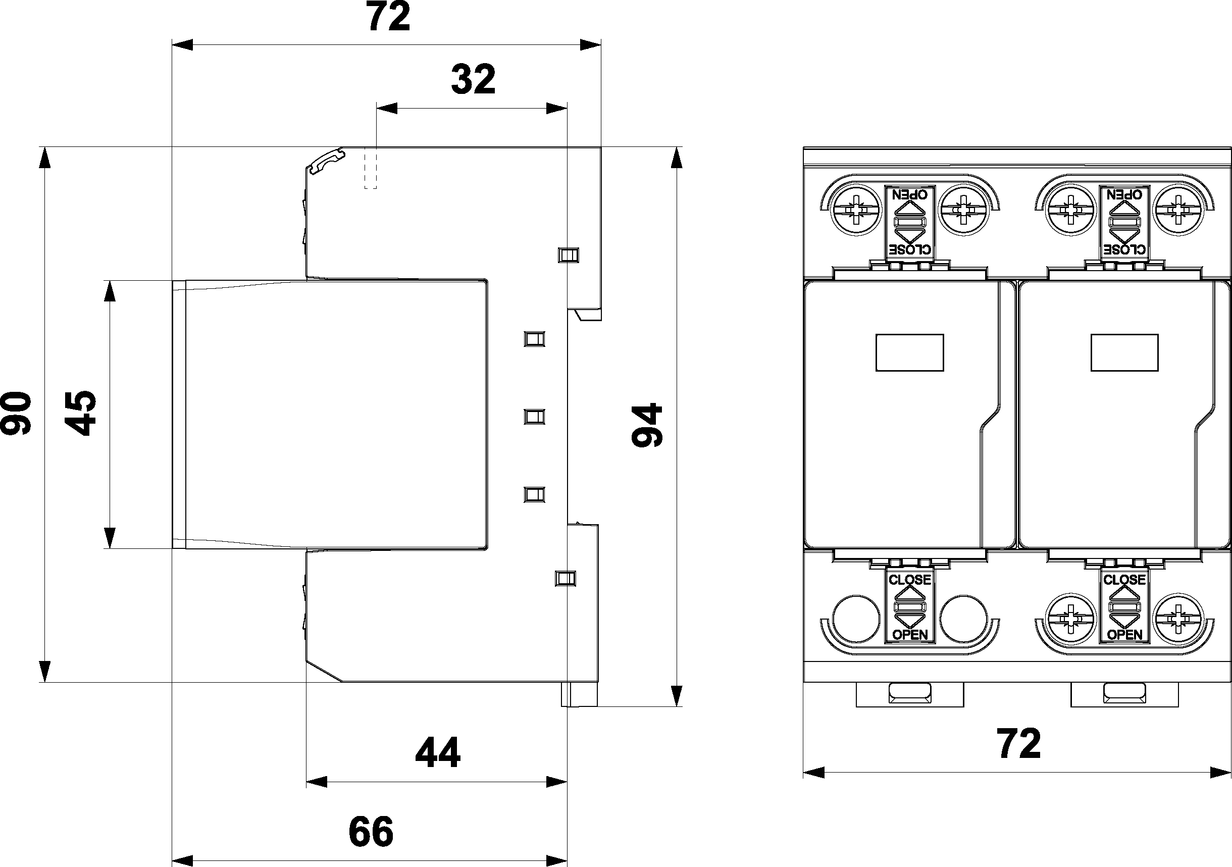 - Zweipoliger Hochleistungs-Kombi-Blitzstromableiter, ohne nachfolgende Ströme