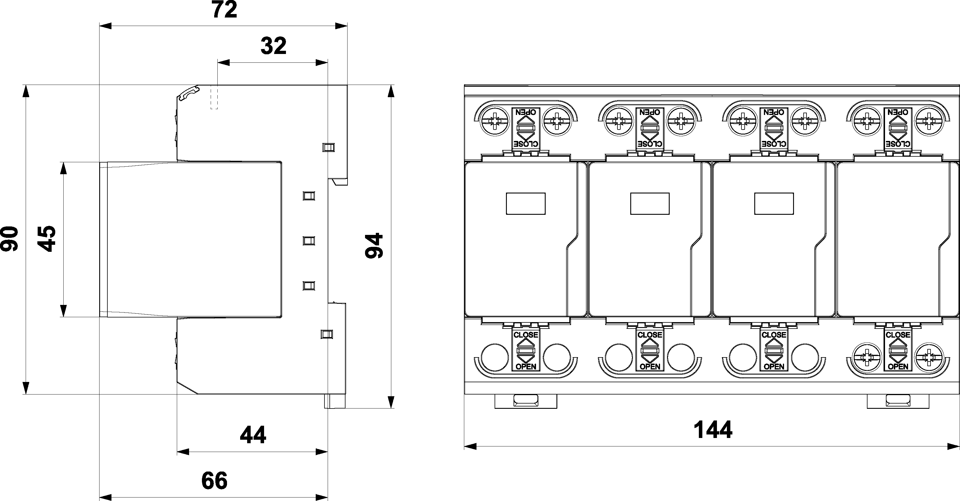 | Gesamtableitstoßstrom (10/350 µs) | ITotal(10/350) | 100,00 kA |