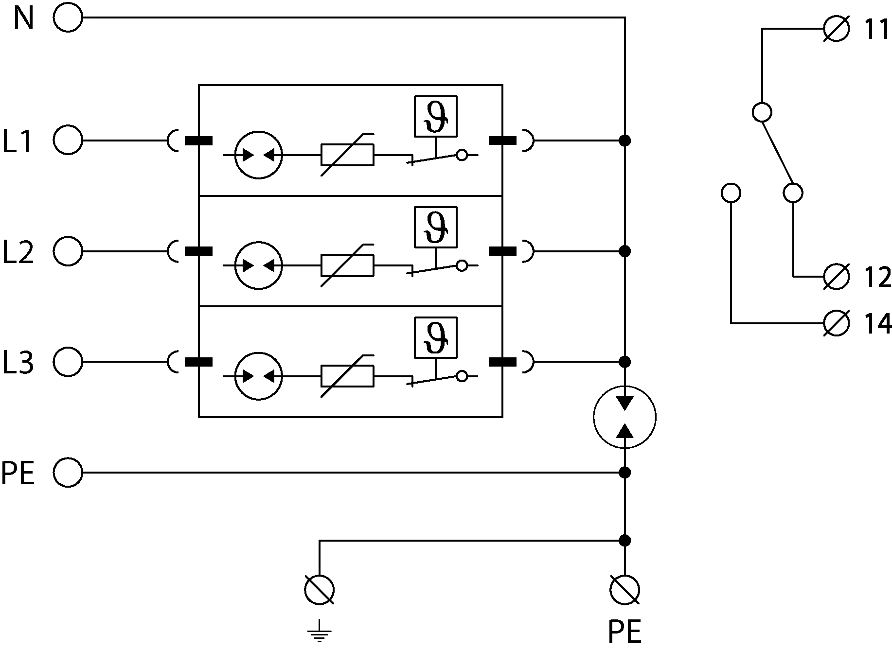 - Installation in NS Verteilungen an der Schnittstelle der Zonen LPZ 0–LPZ 1, insbesondere in Hauptschaltanlagen vor Messanlagen