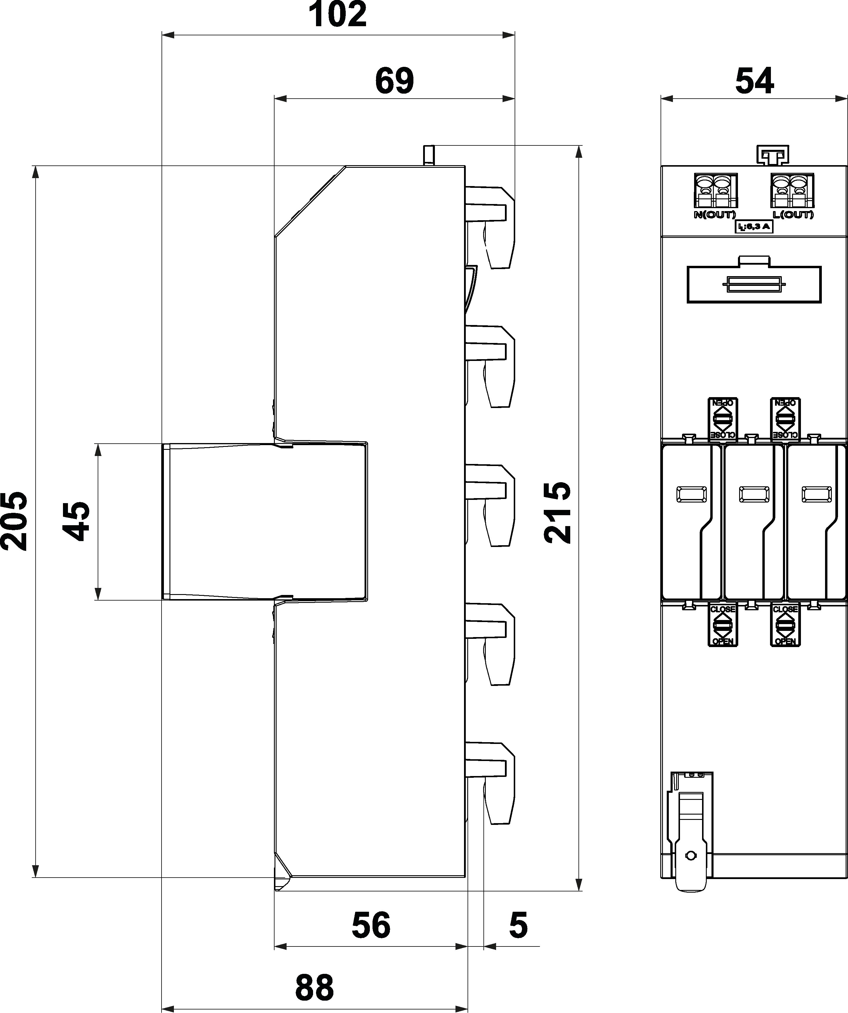 | Montage | Sammelschienen 40 mm | |