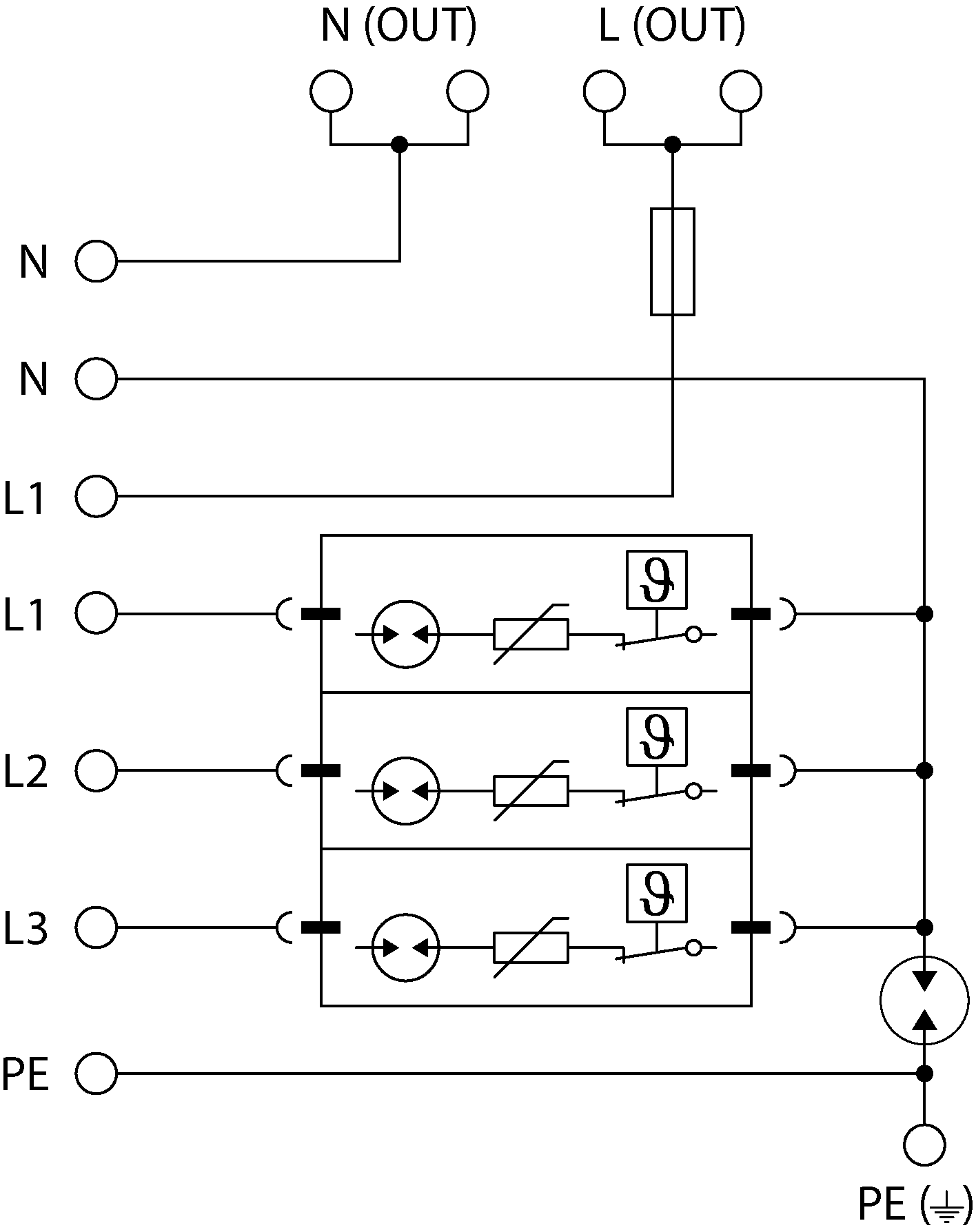 - Installation in NS Verteilungen an der Schnittstelle der Zonen LPZ 0–LPZ 1, insbesondere in Hauptschaltanlagen vor Messanlagen