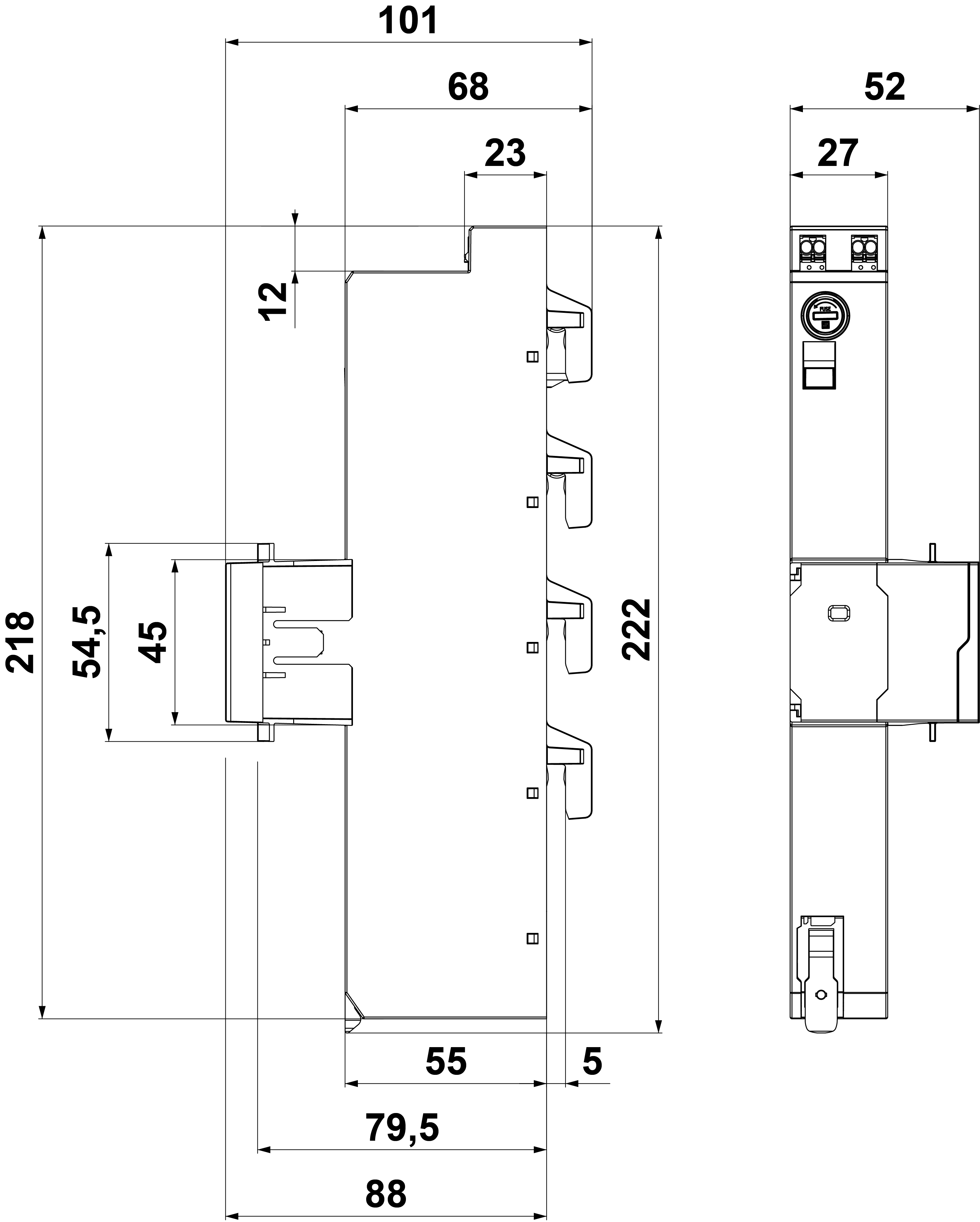 | Montage | Sammelschienen 40 mm | |