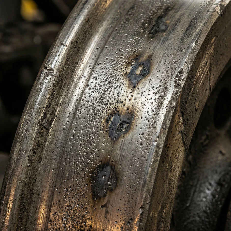 A metro train returns from operation to the depot. It passes over an insulated rail joint. Within a fraction of a second, an electric arc passes through the wheels and bearings, locally melting the metal. This occurs on every entry—hundreds of times per year.