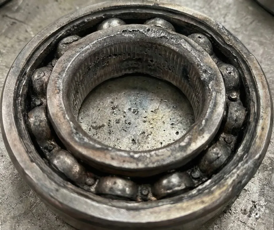 Craters 5–8 μm, washboard pattern, lubricant degradation. Service life reduced to 1–20 % of L10.