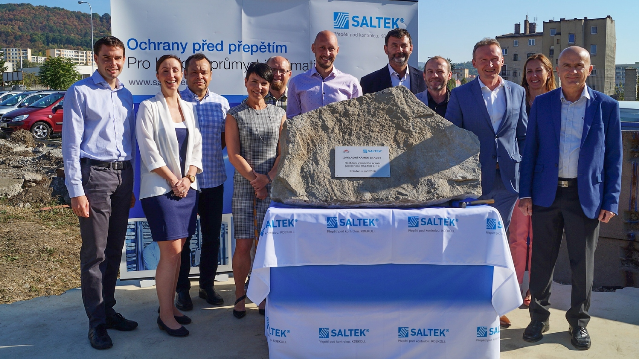 We have laid the foundation-stone of new production and storage facilities of the SALTEK-Company. Everything will be in two years finished including doubling the area in reference to current conditions. In photos there are the Company-owner Ing. J. Suchý along with the representative of the general construction contractor, i.e. the ISTAR s.r.o. Company, Ing. Kozák, the SALTEK-Company officers and a visualization of the new construction including its connetion to the existing production premises.