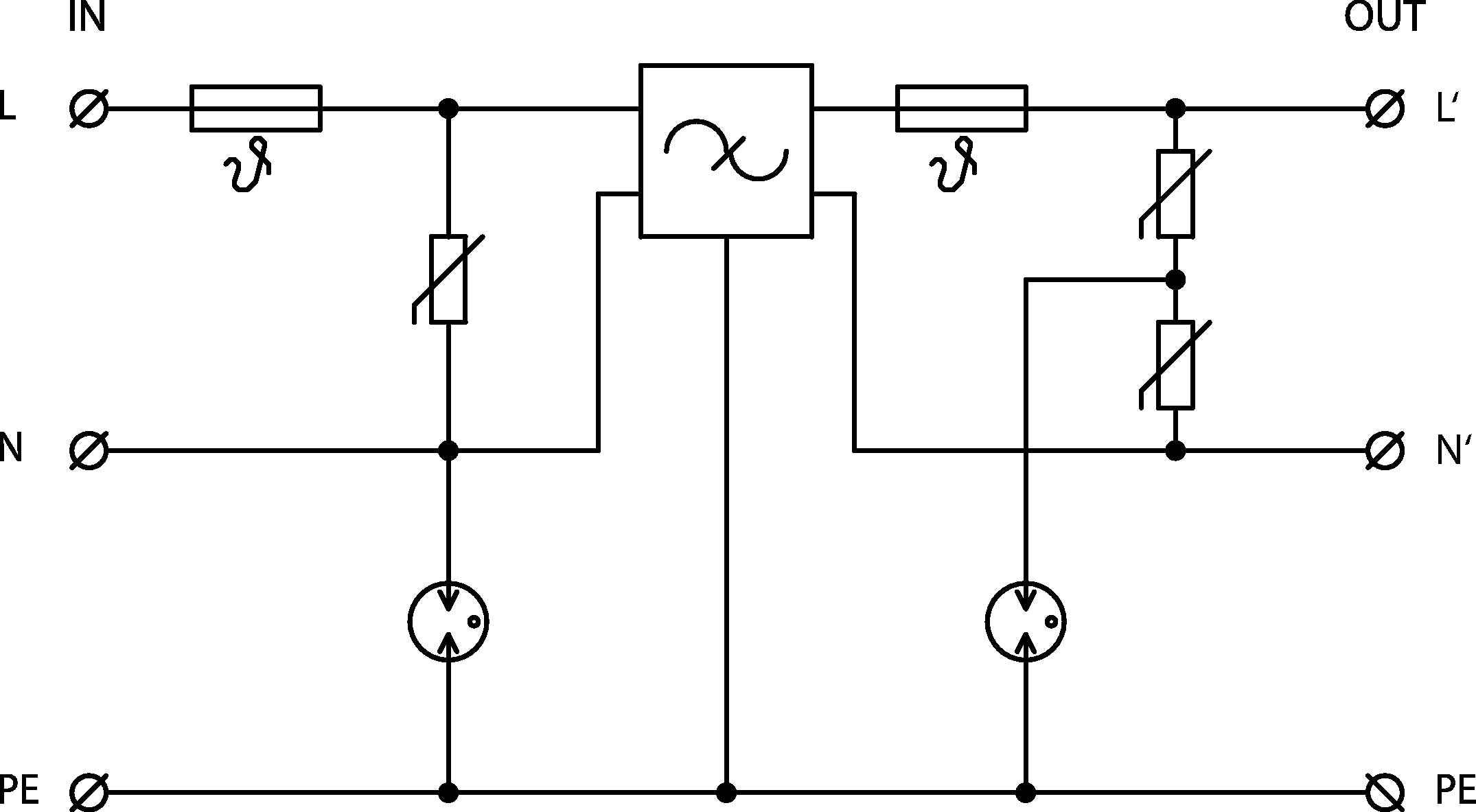 | Test voltage N-PE | Uoc | 3.0 kV |