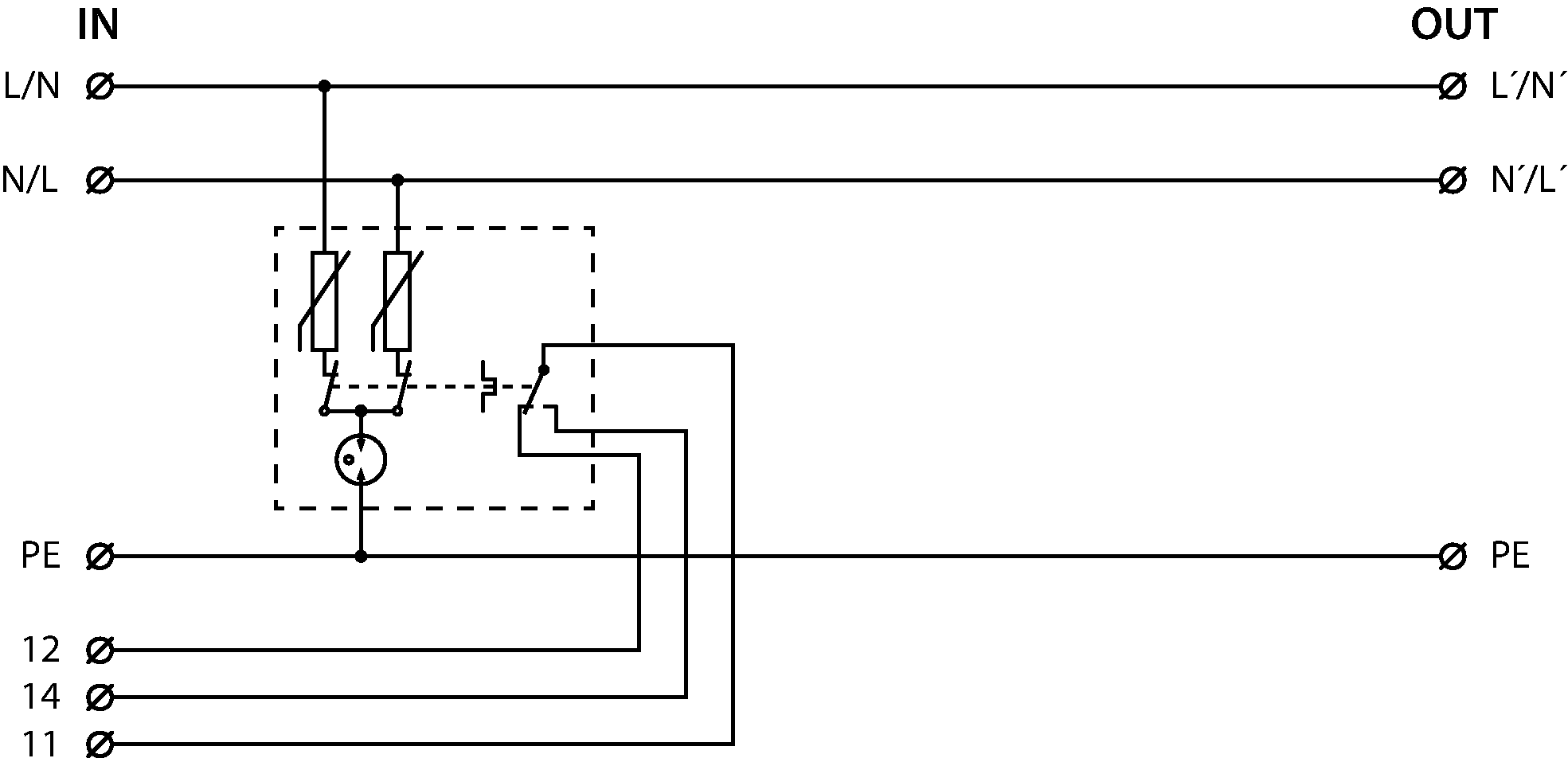 | Nominal discharge current (8/20 µs) L+N-PE | In | 5.00 kA |