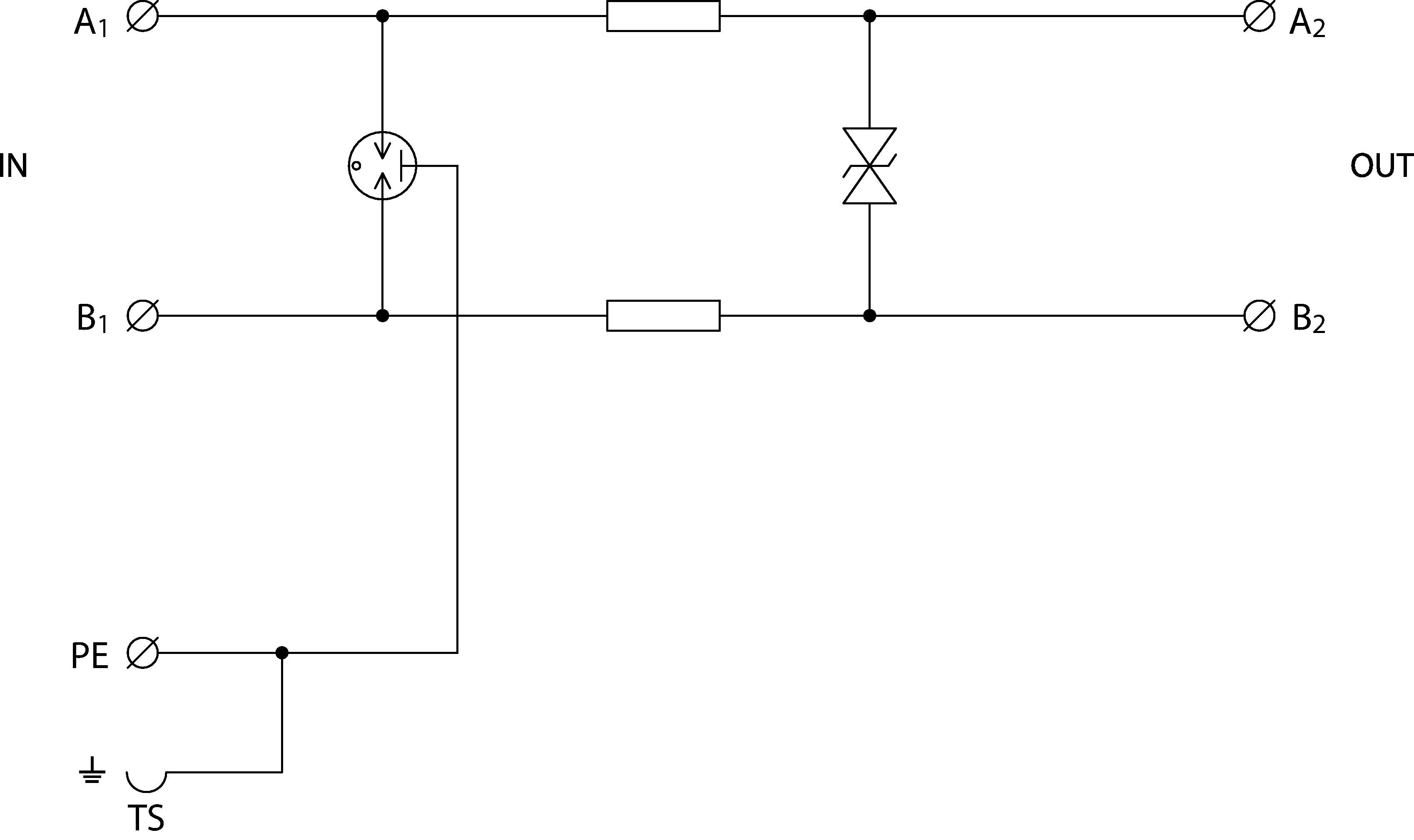 - coarse and fine surge protection in differential mode (core – core) and coarse protection in common mode (core – PE)