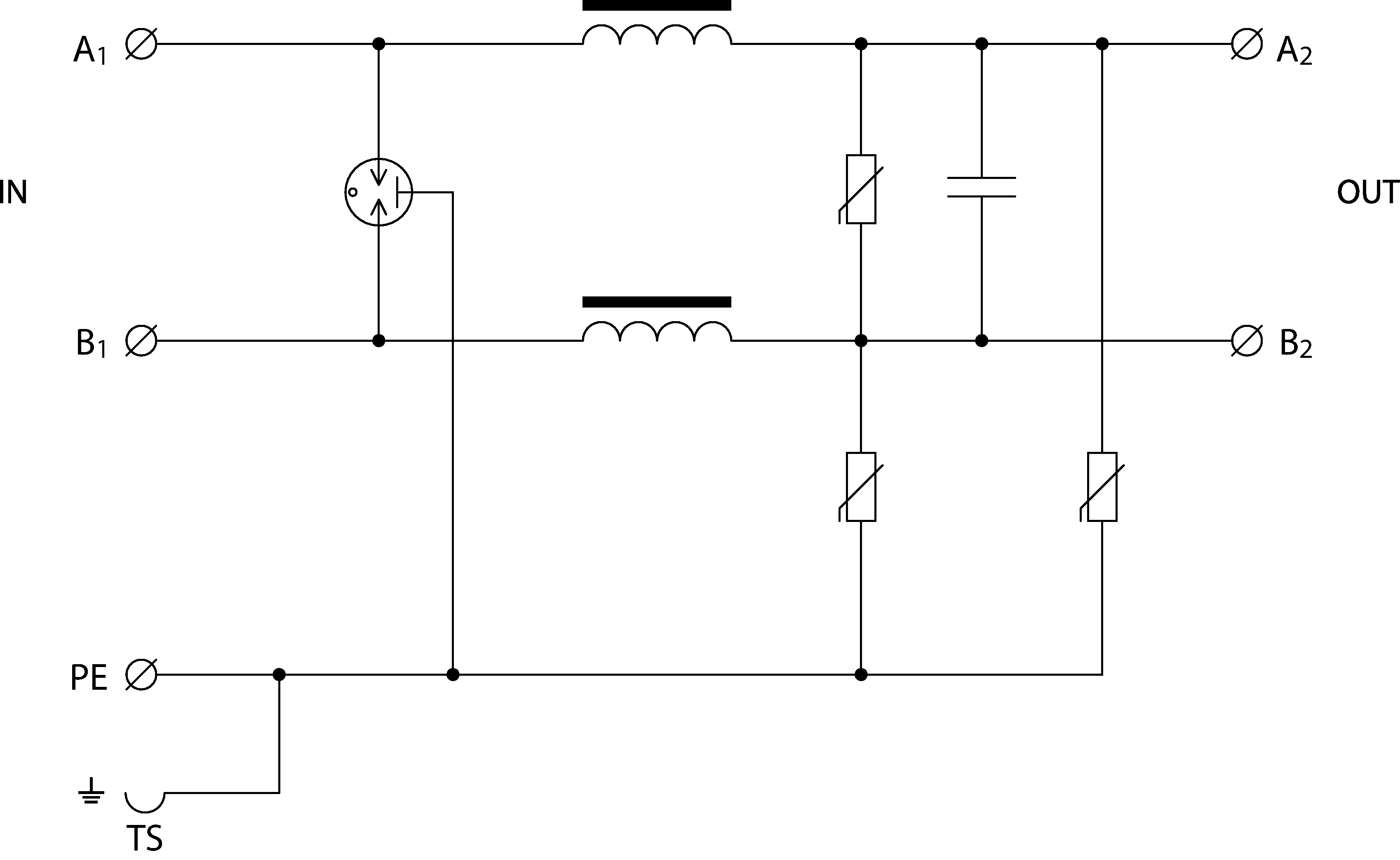 - coarse and fine surge protection in differential mode (core – core) and common mode (core – PE)
