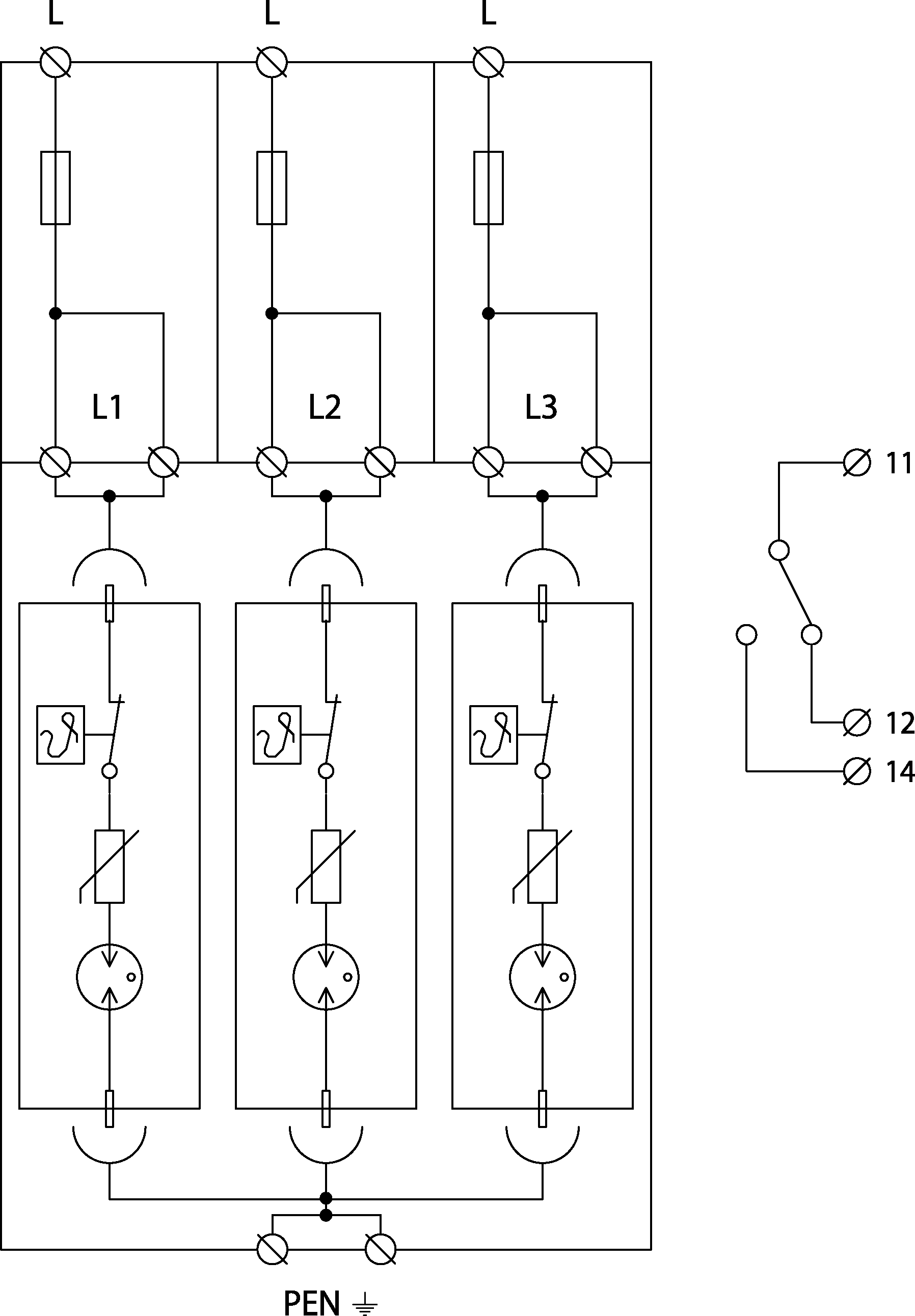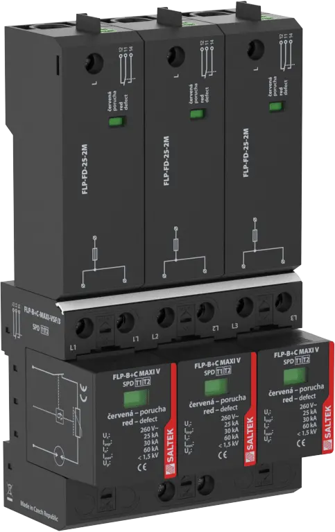 - installation at the boundary of zones LPZ 0 and LPZ 1 or higher, mainly to main distribution boards