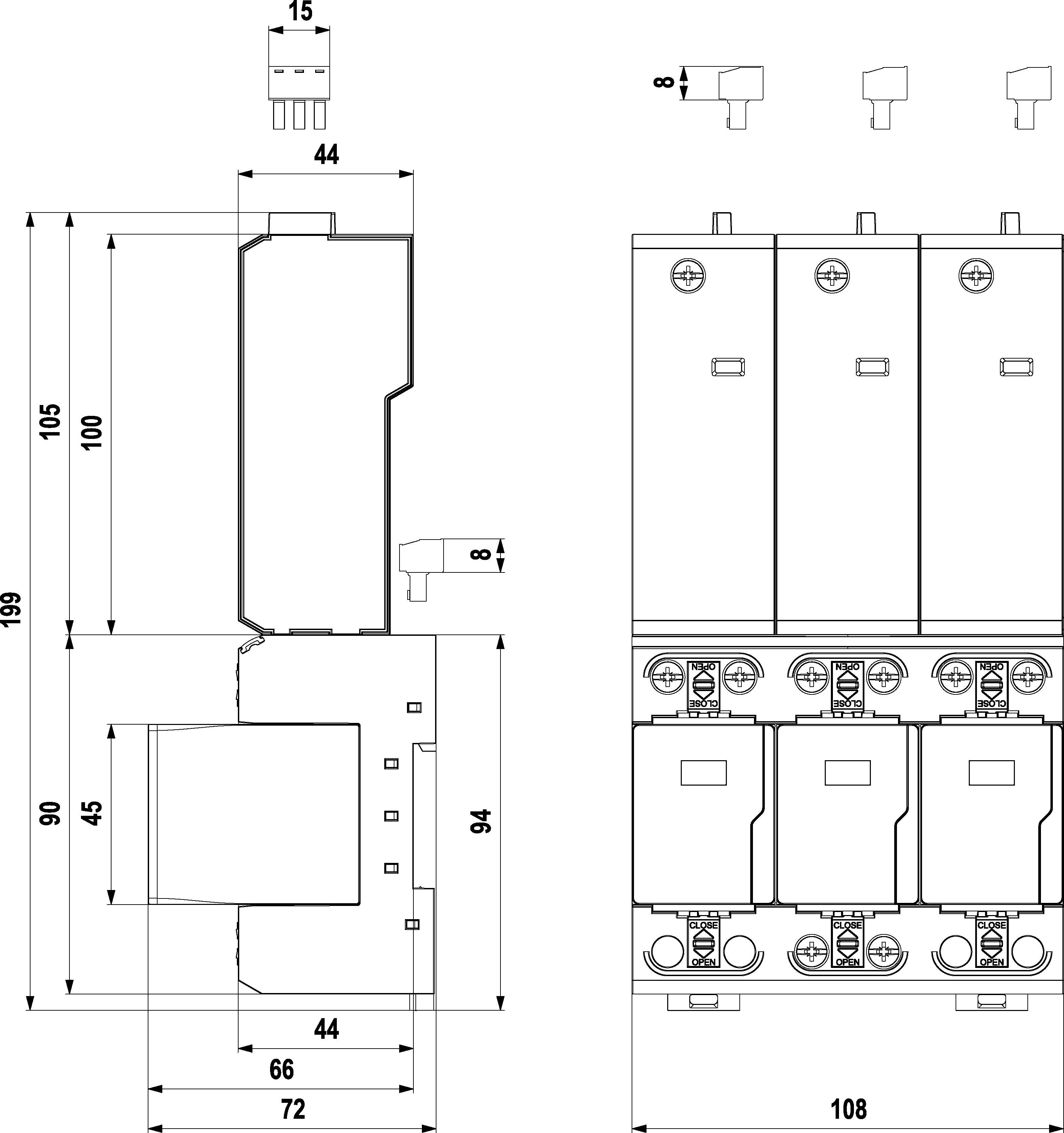 - three-pole high performance lightning current arrester