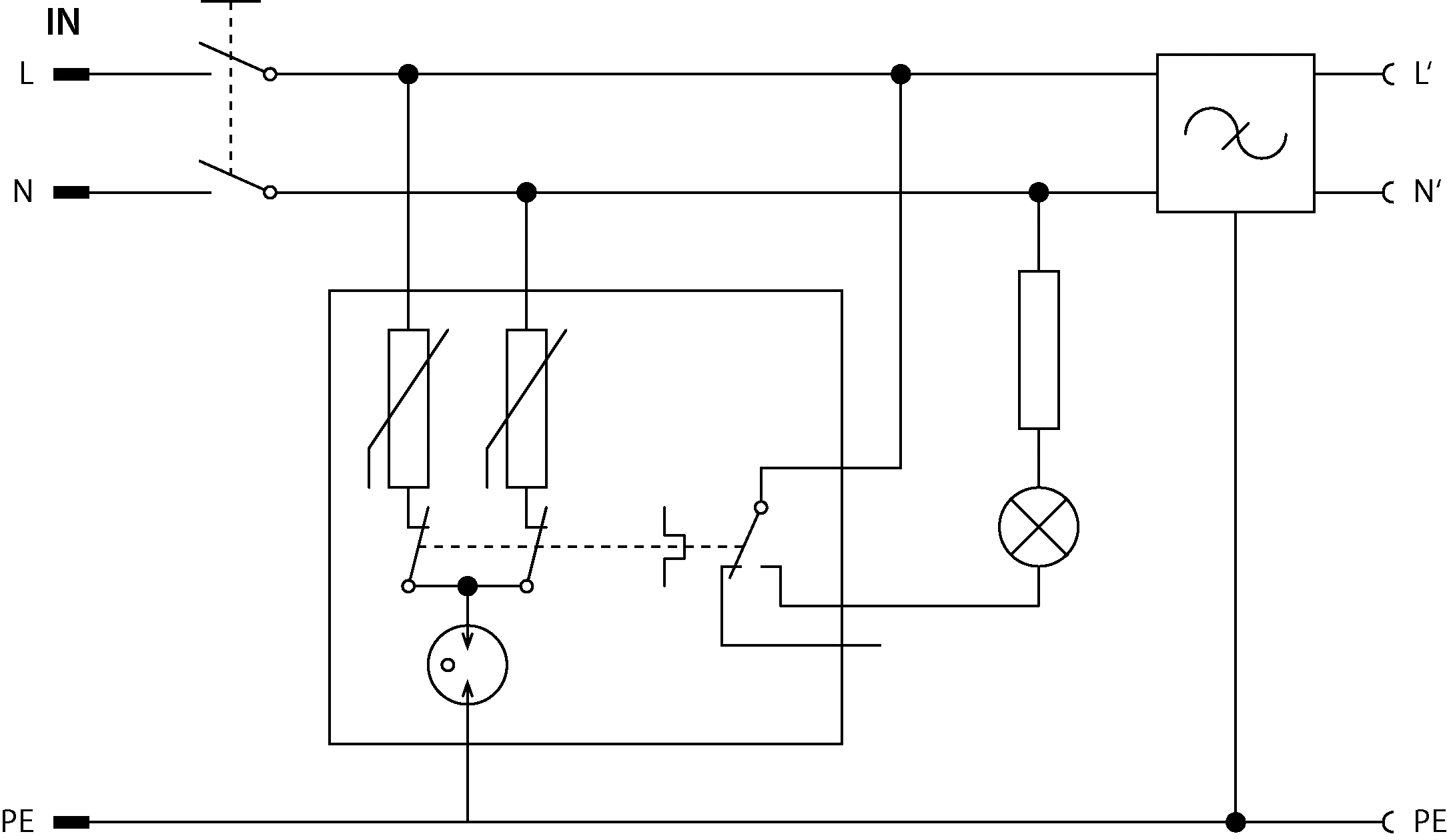 | Nominal discharge current (8/20 µs) L+N-PE | In | 5.00 kA |