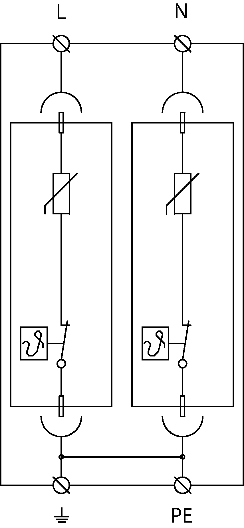 Order number: A07445pluggable module, visual fault signalling§ two-pole varistor surge arrester§ installation to LV installations, especially to sub- distribution boards in TN-S systems§ for protection of the installations and equipments against impact of induced overvoltages during a lightning strike or switching overvoltages