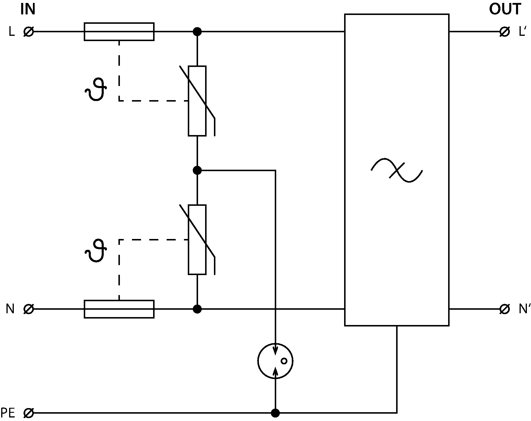 - přepěťová ochrana s integrovaným odrušovacím vf filtrem