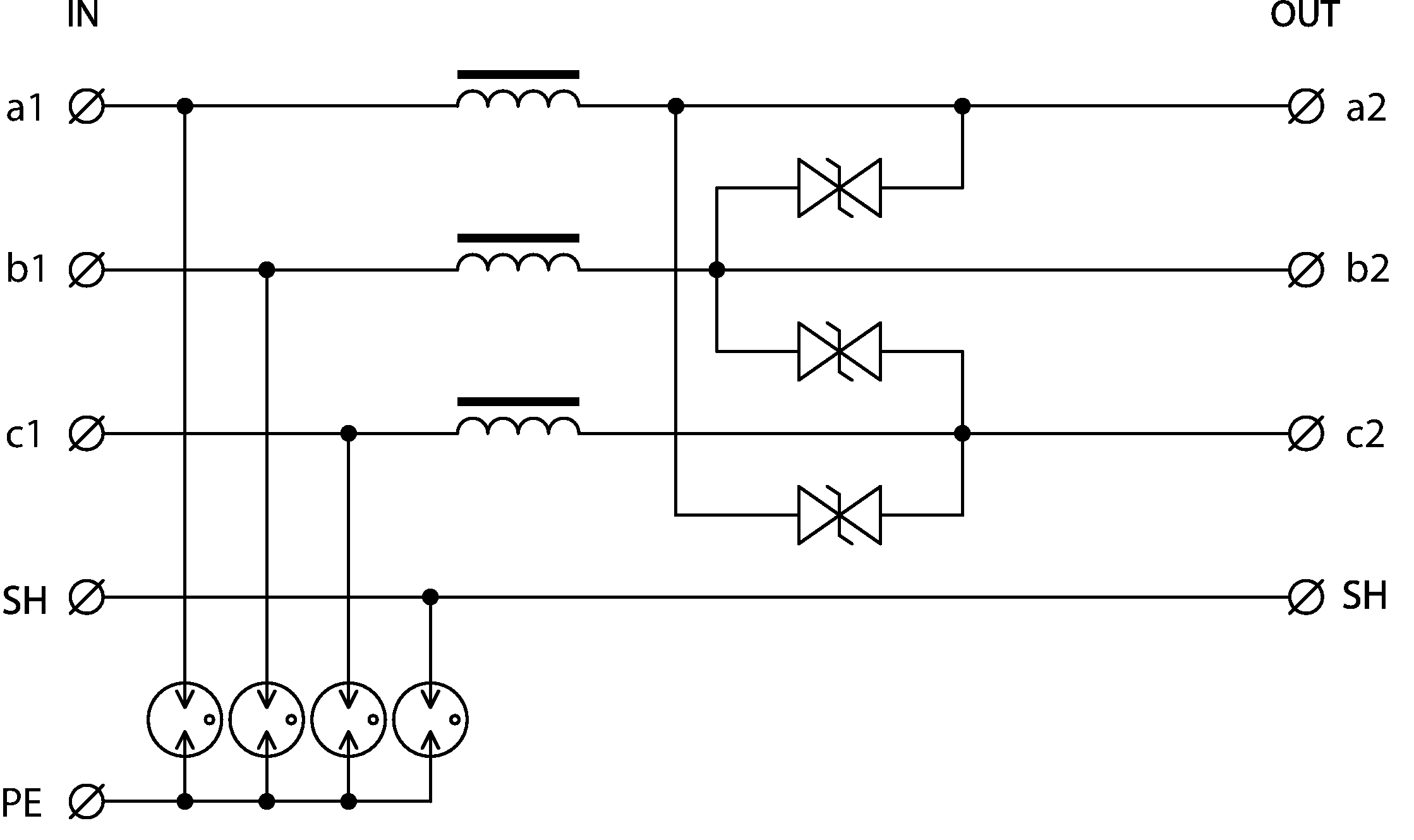 - proti podélnému přepětí (žíla–ochranná zem) hrubá přepěťová ochrana, proti příčnému přepětí (žíla – žíla) hrubá i jemná přepěťová ochrana