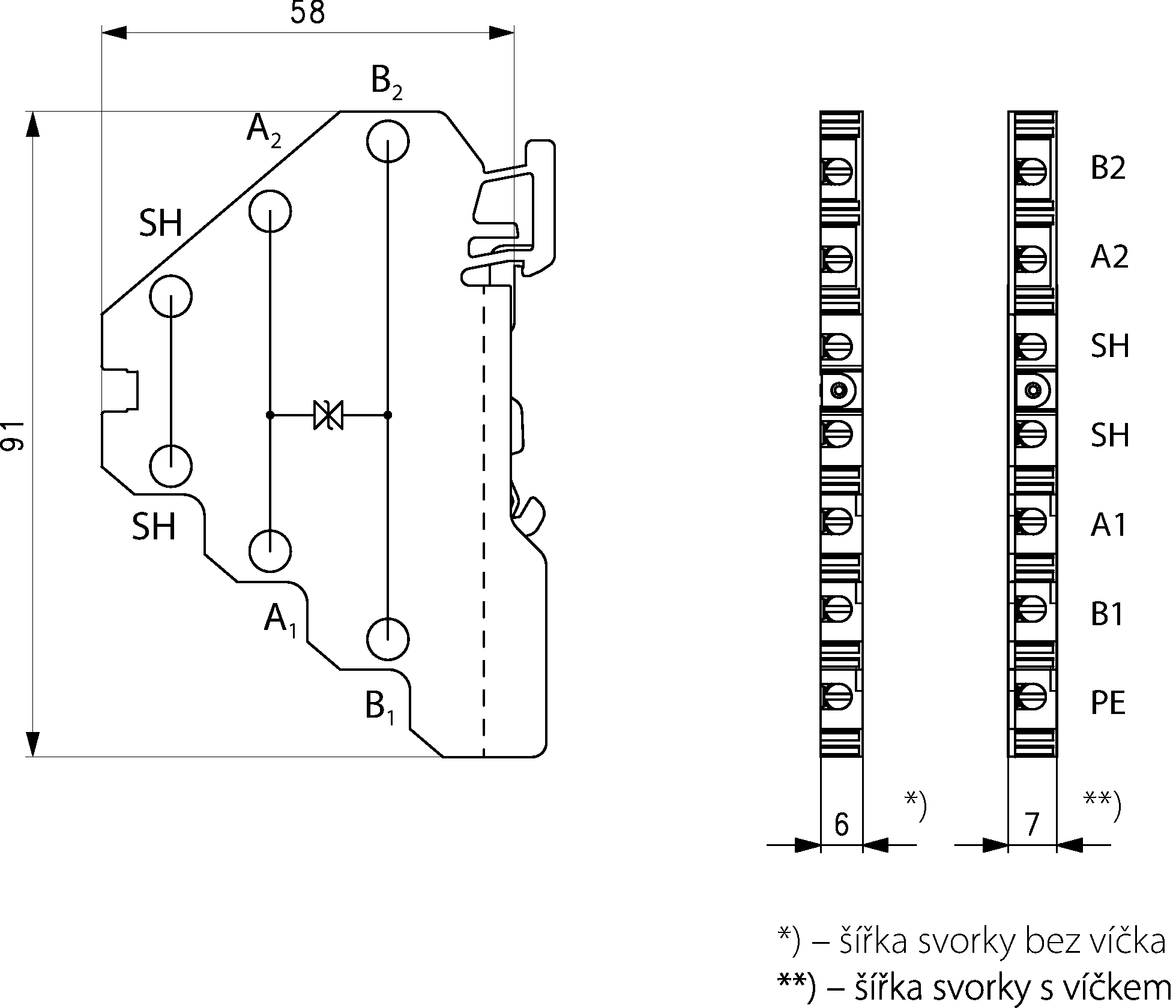 | Připojení (vstup - výstup) | svorky - svorky | |