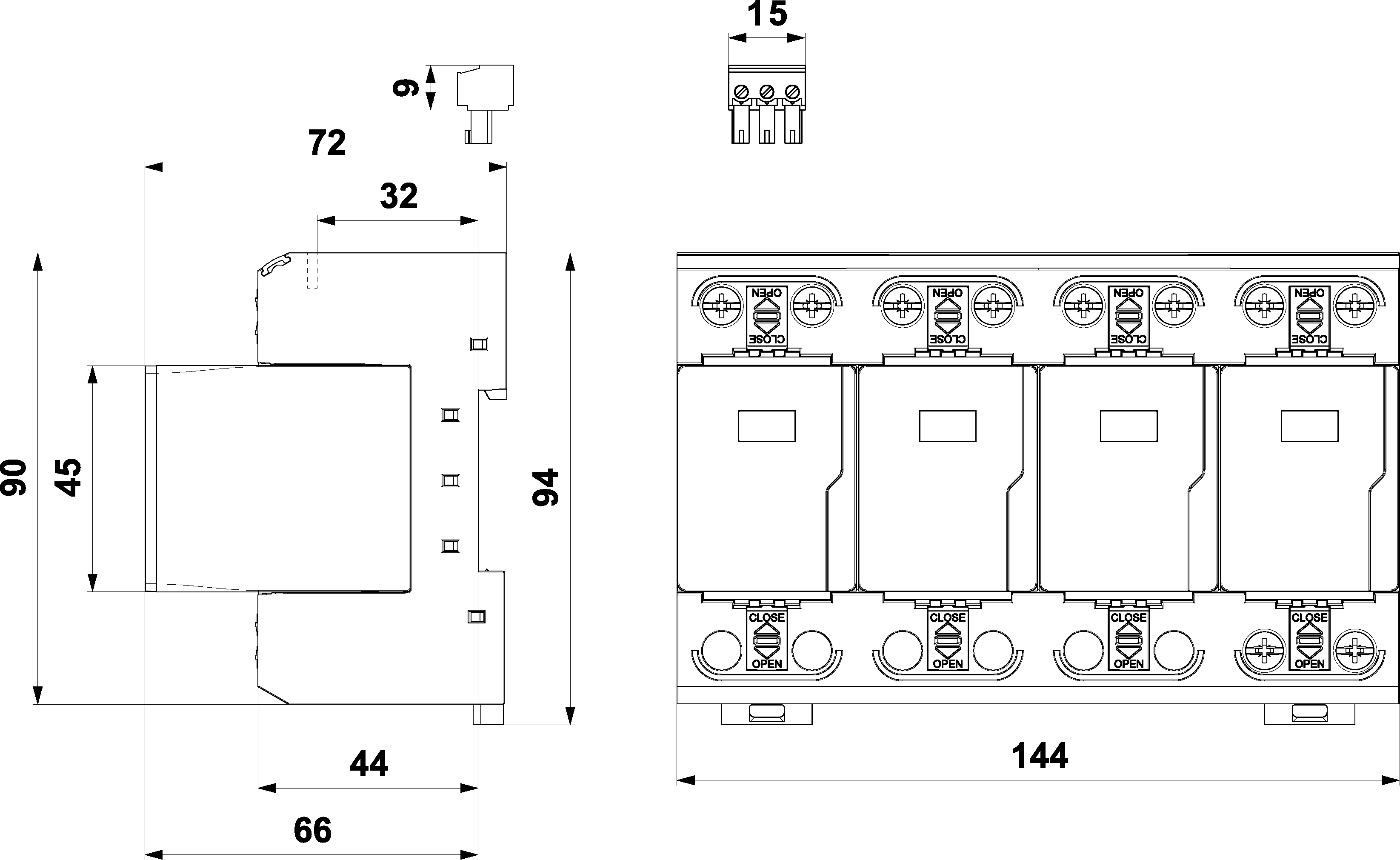 Objednací číslo: A03571vyjímatelný modul, optická signalizace poruchy, možnost blokace modulu, dálková signalizace poruchy
