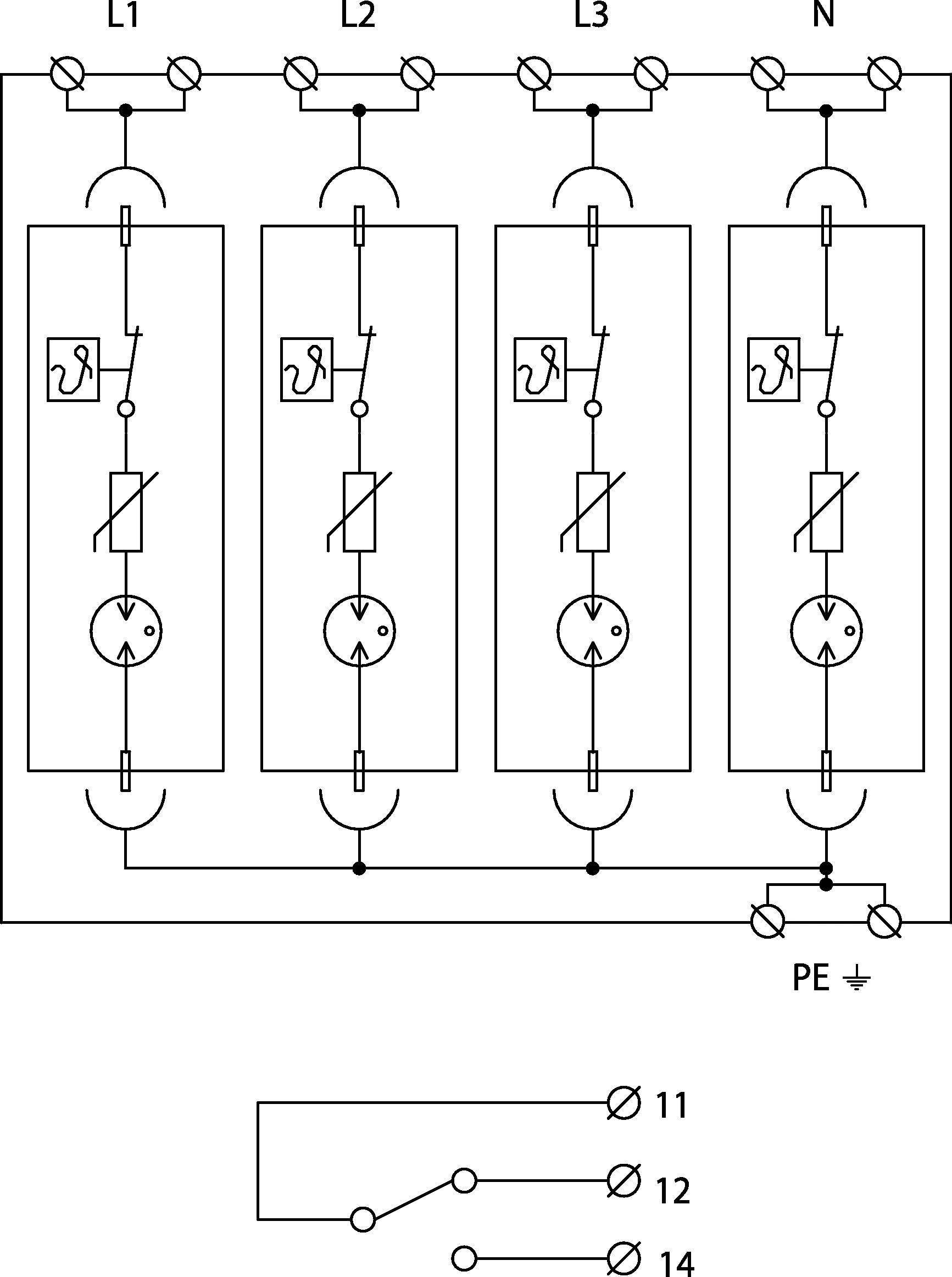 - čtyřpólový výkonný kombinovaný svodič bleskových proudů