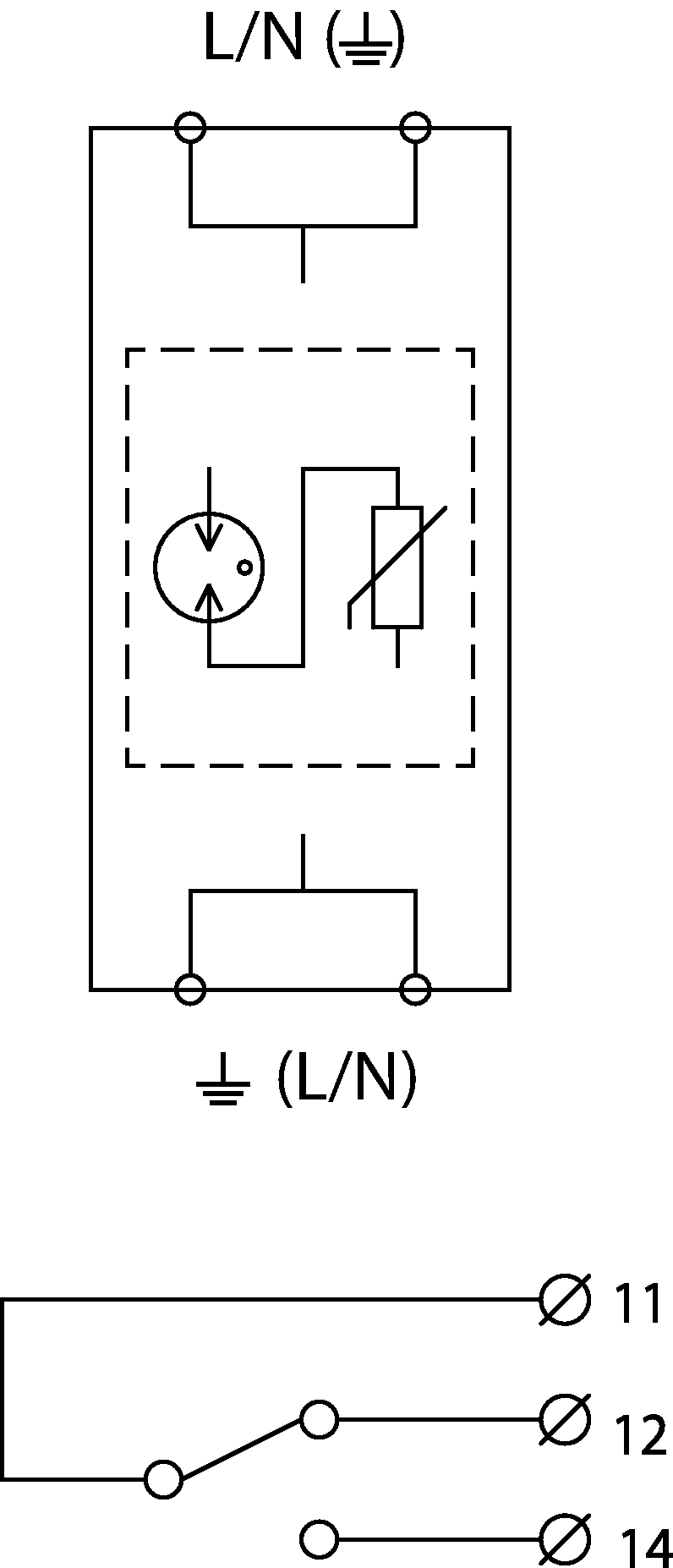 - koordinuje s SPD typu 2 (SLP-275 V) i bez použitia oddeľovacích tlmiviek, nulový unikajúci prúd, voliteľná diaľková signalizácia stavu