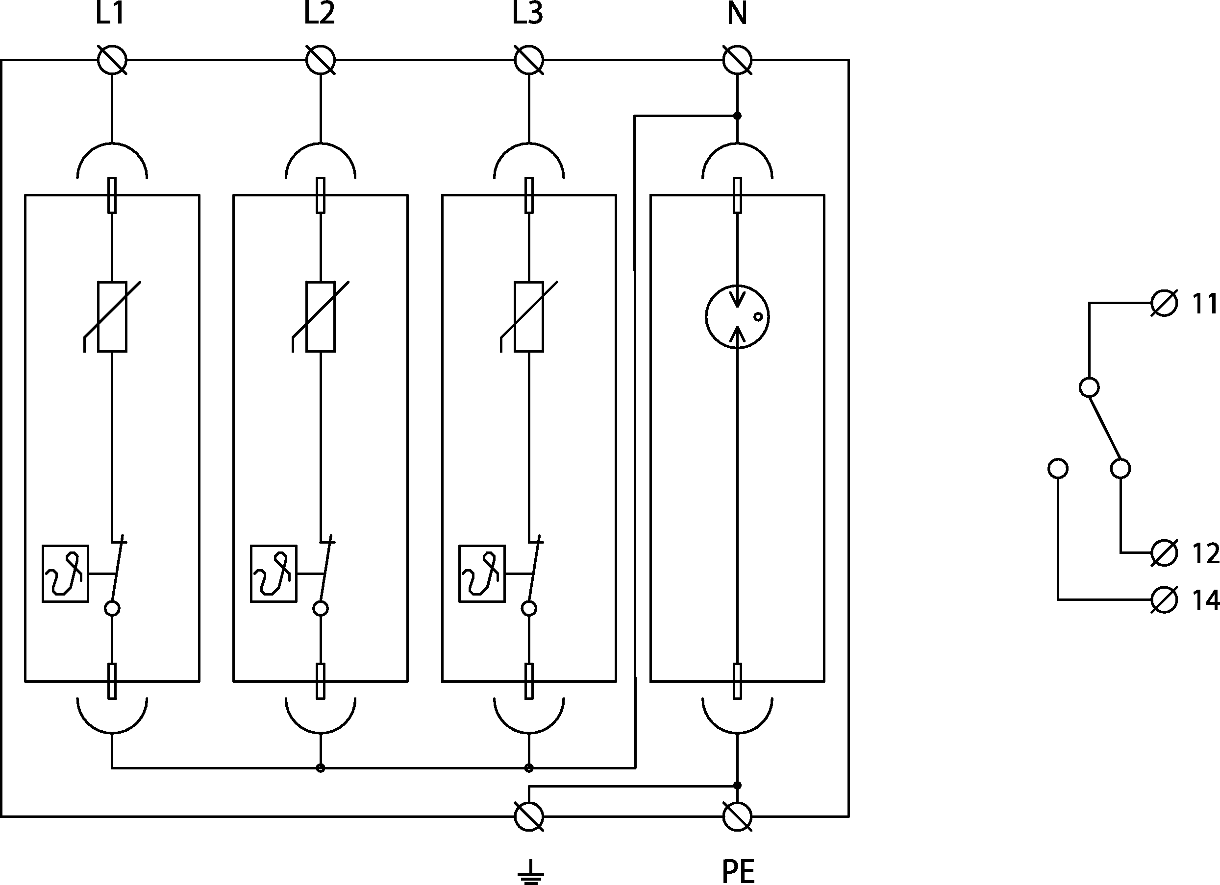 - zostava trojpólového varistorového zvodiča prepätia a uzatvoreného iskriska zapojených v móde 3+1